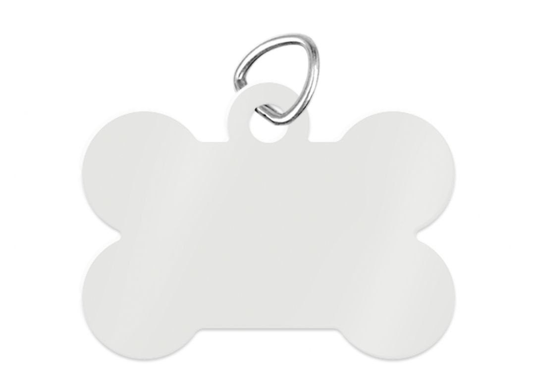 Dieser Aluminium-Anhänger in Knochenform bietet viel Platz für den Aufdruck einer individuellen Botschaft. Entweder als nützliche Ausstattung am Hundehalsband mit Namen und Adresse des Vierbeiners oder einfach nur mit einem lustigen Foto zum Spaß. Der Anhänger kann einseitig bedruckt werden und ist bereits mit einer Lochung versehen. Die mitgelieferte Metallöse dient zur sicheren Befestigung am Halsband.