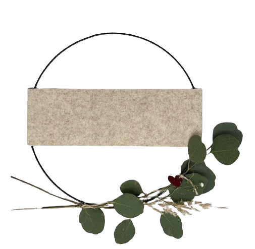 Schwarzer Metallring mit Filzstreifen in Farbe Natur meliert. Verwendung z.B: Türschmuck